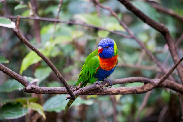 Birds_338Colorful Rainbow Lorikeet Parrot sitting in Branch, Australia