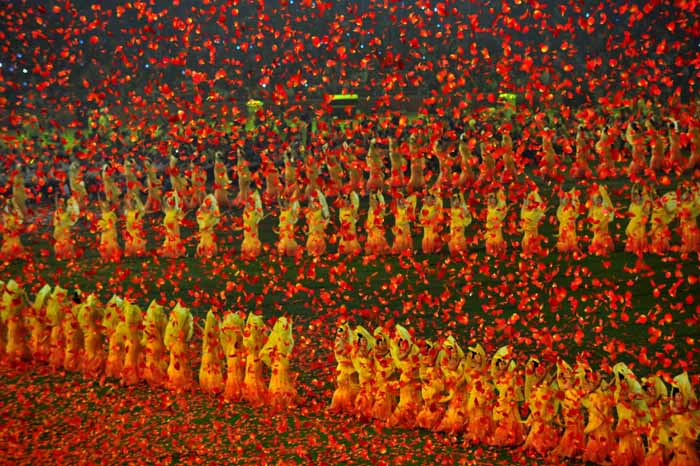 Dancers perform in the National Stadium, better known as the Bird's Nest, at the closing ceremony of the 2008 Beijing Paralympic Games in Beijing on September 17, 2008. China will bring down the curtain on a spectacular summer of sport during which it dazzled on and off the track, with the closing ceremony of the Paralympics.