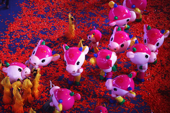 Fu Niu Lele, the mascot of the 2008 Summer Paralympics, performed during the closing ceremony of the 2008 Beijing Paralympic Games at the National Stadium on September 17, 2008 in Beijing, China.