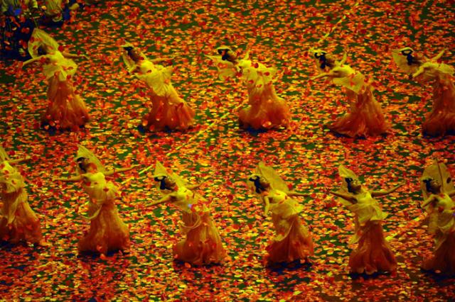 Dancers perform in the National Stadium, better known as the Bird's Nest, at the closing ceremony of the 2008 Beijing Paralympic Games in Beijing on September 17, 2008. China will bring down the curtain on a spectacular summer of sport during which it dazzled on and off the track, with the closing ceremony of the Paralympics.