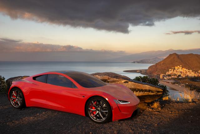 Cars_338Lanzarote, Spain-May 2019: 2020 Tesla Roadster on the road in the Canary Islands