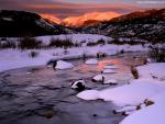 Nature_340Wonderful nature of Iceland. Icelandic violet blooming flowers (Lupins) in scenic view with mountains, waterfall and colorful sky on background. typical image of Iceland