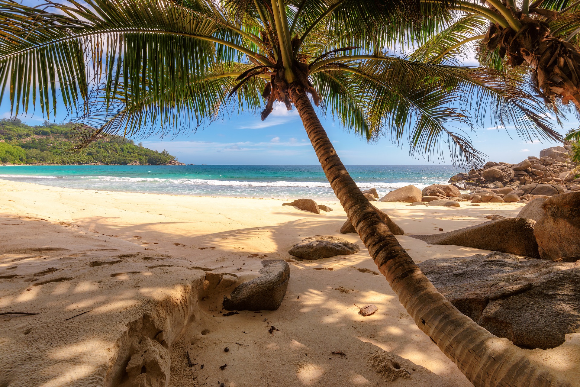 Beaches_151Palm trees on beautiful beach at Seychelles, Mahe Island
