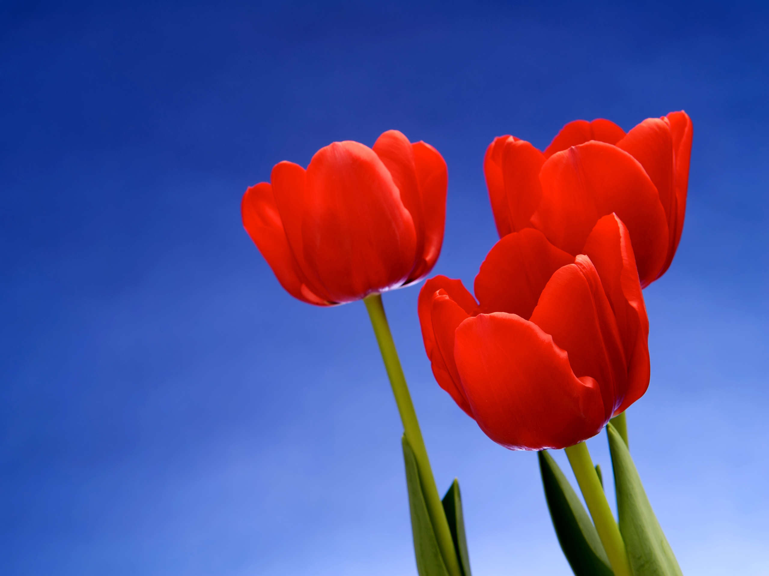 Image of red tulips against vivid blue