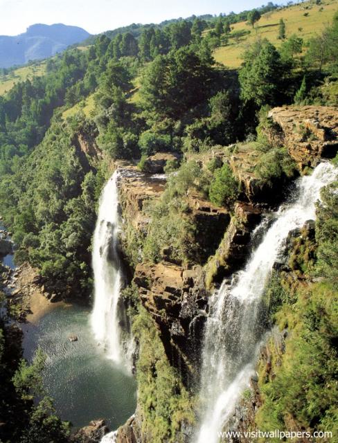 africa_168Maletsunyane Falls in Lesotho Africa. The most beautiful waterfalls in the world, beautiful green landscape of amazing waterfalls falling into the river within the valley, panoramic views of great waterfalls. Maletsunyane Falls is a 192-metre-high (