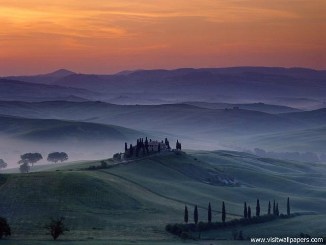 Italy_072 Tuscan Villa at Sunrise San Quirico D'Orcia Italy Date: 9/22/2011 Tuscan Villa at Sunrise San Quirico D'Orcia Italy