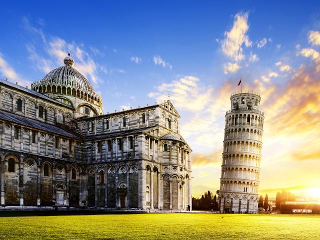 Italy_123 Pisa Cathedral and the Leaning Tower in a sunny day in Pisa, Italy. Date: 1/27/2020 Pisa Cathedral and the Leaning Tower in a sunny day in Pisa, Italy.