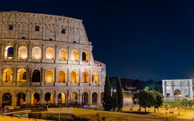 Italy_165 Colosseum Building at Night, Rome, Italy Date: 4/13/2024 Colosseum Building at Night, Rome, Italy