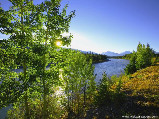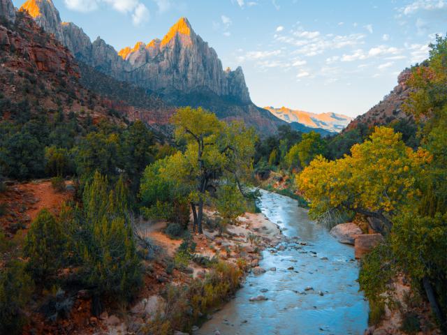 Parks_380View of Watchman Mountain and the Virgin River in Zion National Park on a sunny day, southwestern United States, near Springdale, Utah, Arizona