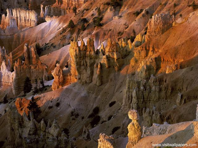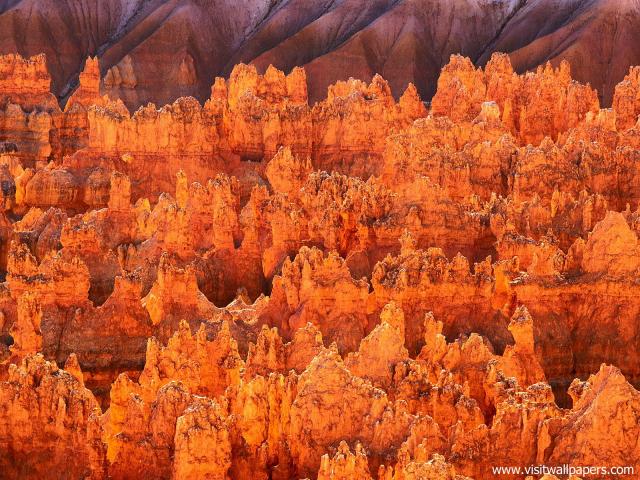 Parks_378Bryce Canyon National Park at Sunrise Bryce Canyon National Park, a sprawling reserve in southern Utah, is known for its crimson-colored hoodoos, or spire-shaped rock formations. The park’s main road leads past the expansive Bryce Amphitheater, a hoodoo