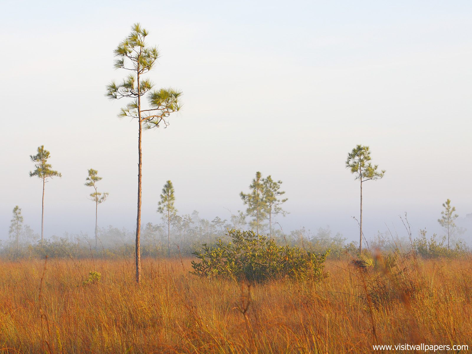 Parks_366A sunset landscape at the Upper Geyser Basin in Yellowstone National Park, where steam rises from geyser vents and hot springs near a forest of lodgepole pine trees, and a herd of bison is grazing.