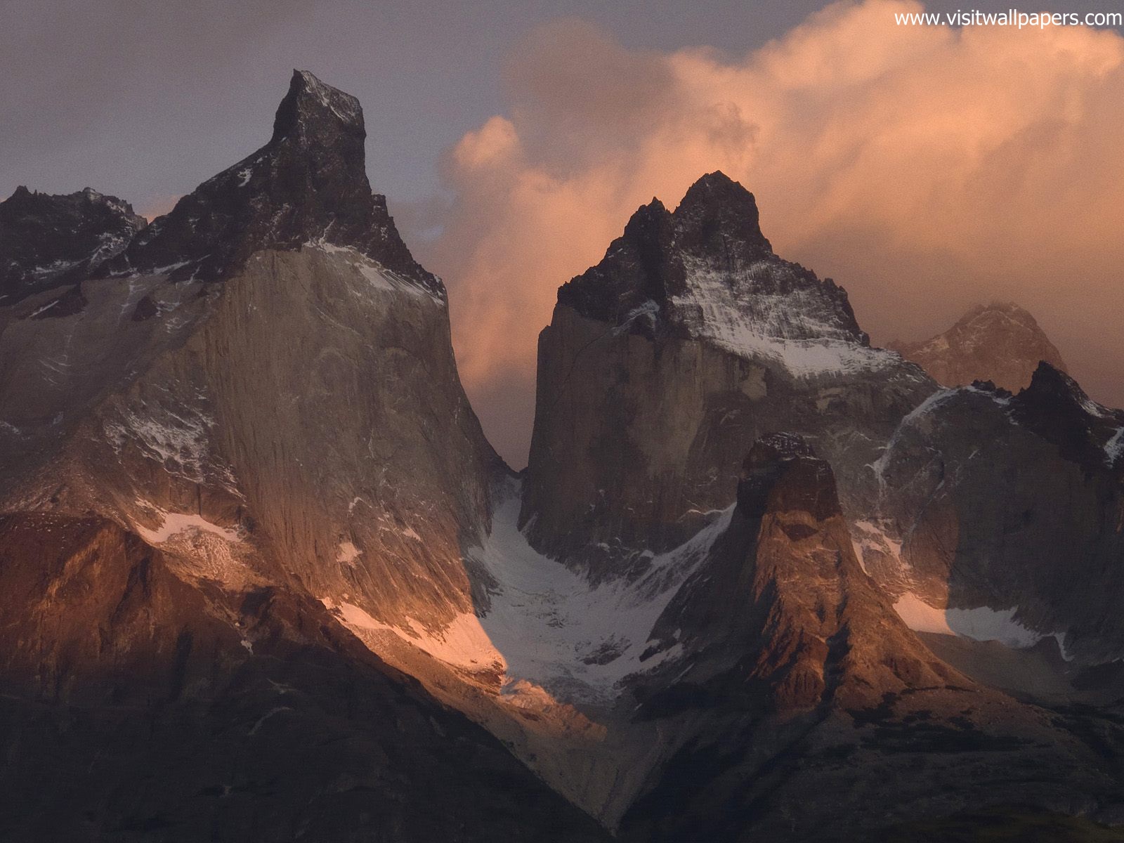 Torres del Paine National Park is a national park encompassing mountains, glaciers, lakes, and rivers in southern Chilean Patagonia. The Cordillera del Paine is the centerpiece of the park. It lies in a transition area between the Magellanic subpolar forests and the Patagonian Steppes. The park is located 112 km (70 mi) north of Puerto Natales and 312 km (194 mi) north of Punta Arenas. The park borders Bernardo O'Higgins National Park to the west and the Los Glaciares National Park to the north in Argentine territory. Paine means "blue" in the native Tehuelche (Aonikenk) language and is pronounced PIE-neh, while Torres means "towers". It was established as a National Park in 1959.
