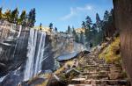 View of Nevada Mountains and Falls from the Mist Trail in Yosemite National Park. Summer Vacation in California, USA.