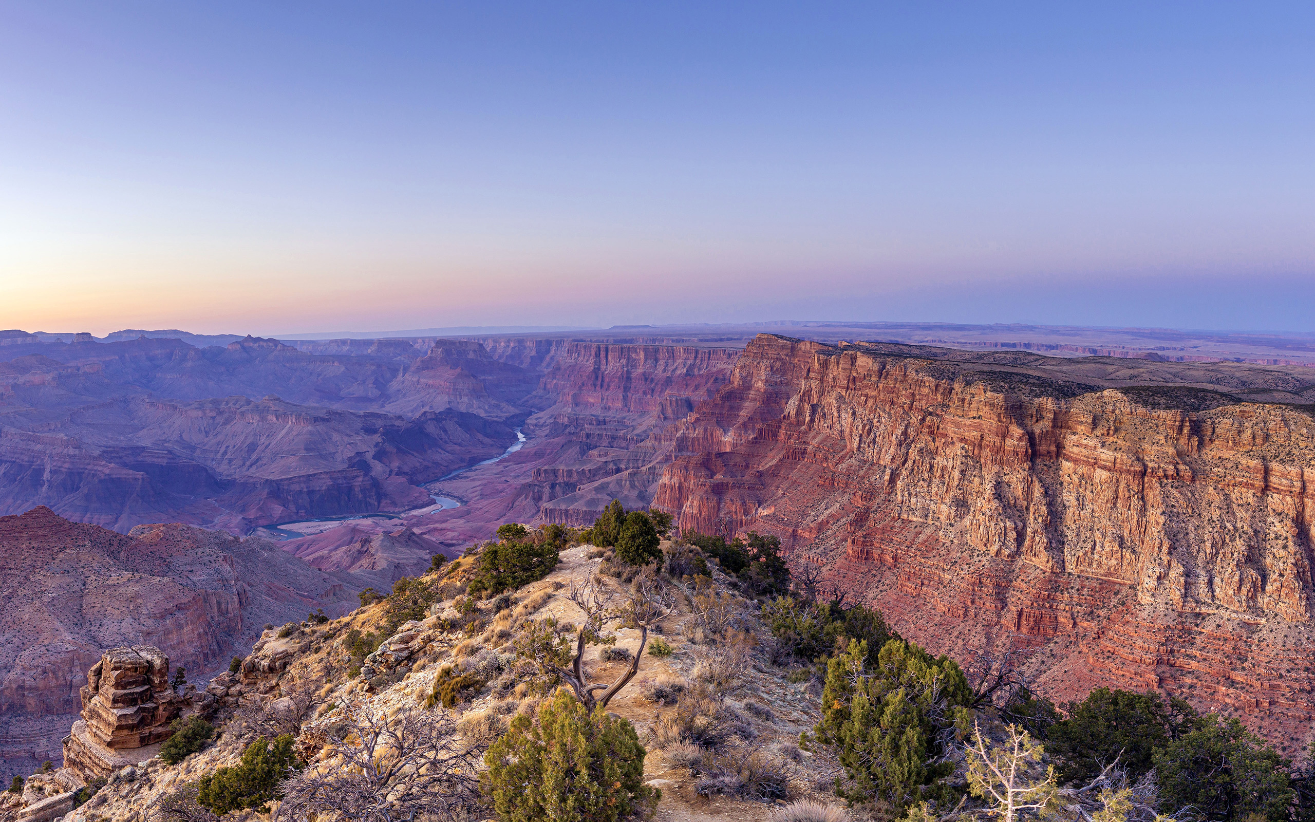 Beautiful Landscape of Grand Canyon from Desert View Point with the Colorado River visible during dusk
