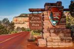 Parks_357East Entrance, Zion National Park Sign, Utah Zion National Park is an American national park located in southwestern Utah near the town of Springdale. Located at the junction of the Colorado Plateau, Great Basin, and Mojave Desert regions, the par