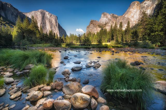 Parks_363Yosemite National Park - Reflection in Merced River of Yosemite waterfalls and beautiful mountain landscape, hiking in the beautiful nature of California, USA