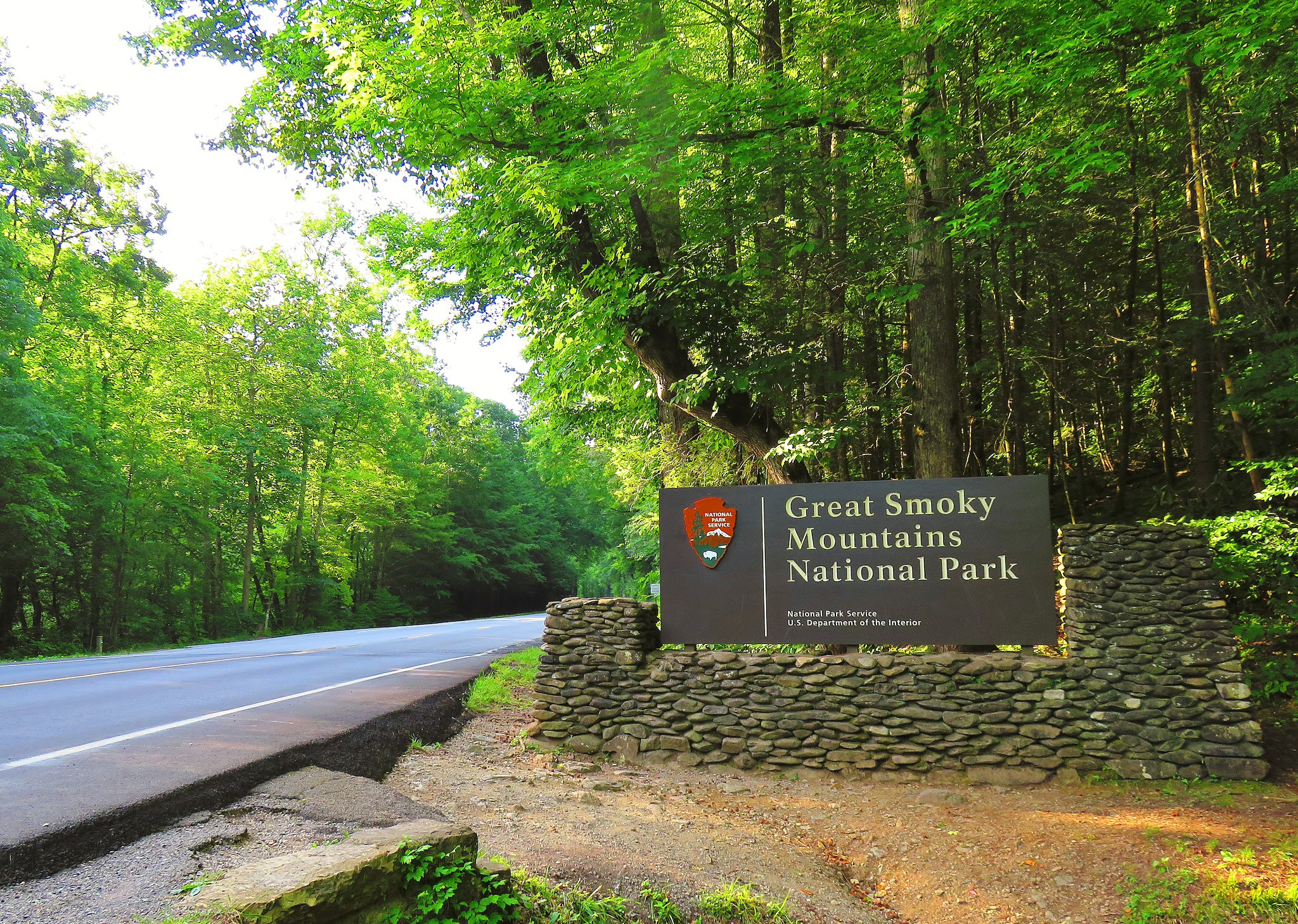 Gatlinburg, Tennessee, United States : Great Smoky Mountain National Park Sign at the busiest entrance to the busiest National Park in the country.