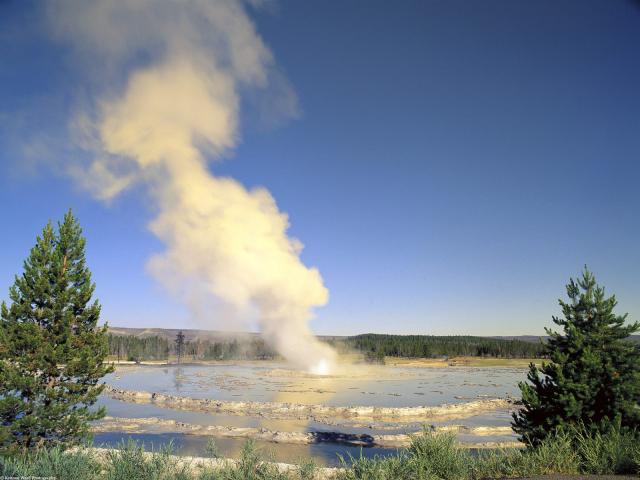 Spectacular Lone Star Geyser during Eruption - Yellowstone national park