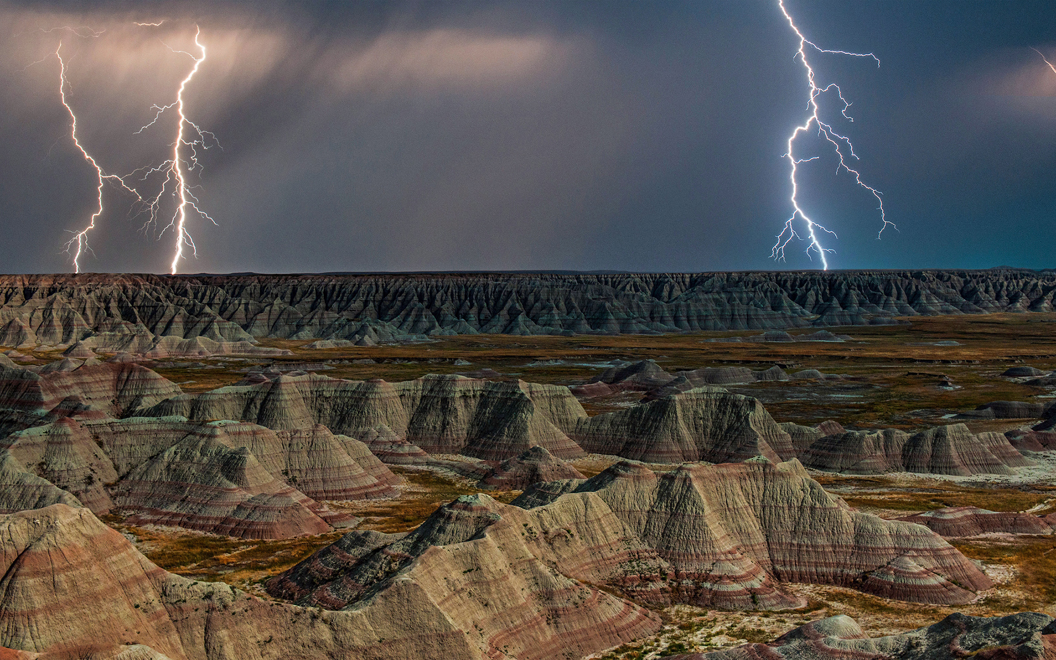 Parks_353Lightning over Badlands National Park, South Dakota, United States