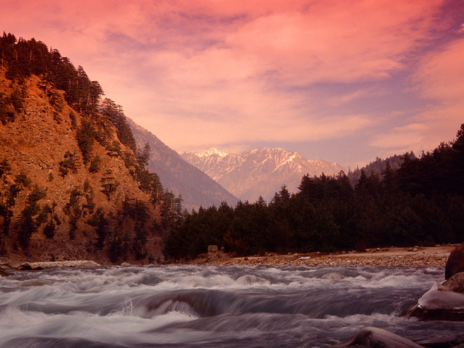 Athabasca River with the Miette range in the distance, Jasper National Park, Alberta, Canada