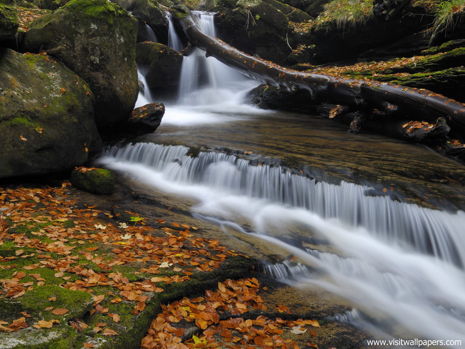 river_245Beautiful Smoky Mountain stream in the Fall season, showing golden, red and green trees lining the stream and rushing water with moss covered rocks.