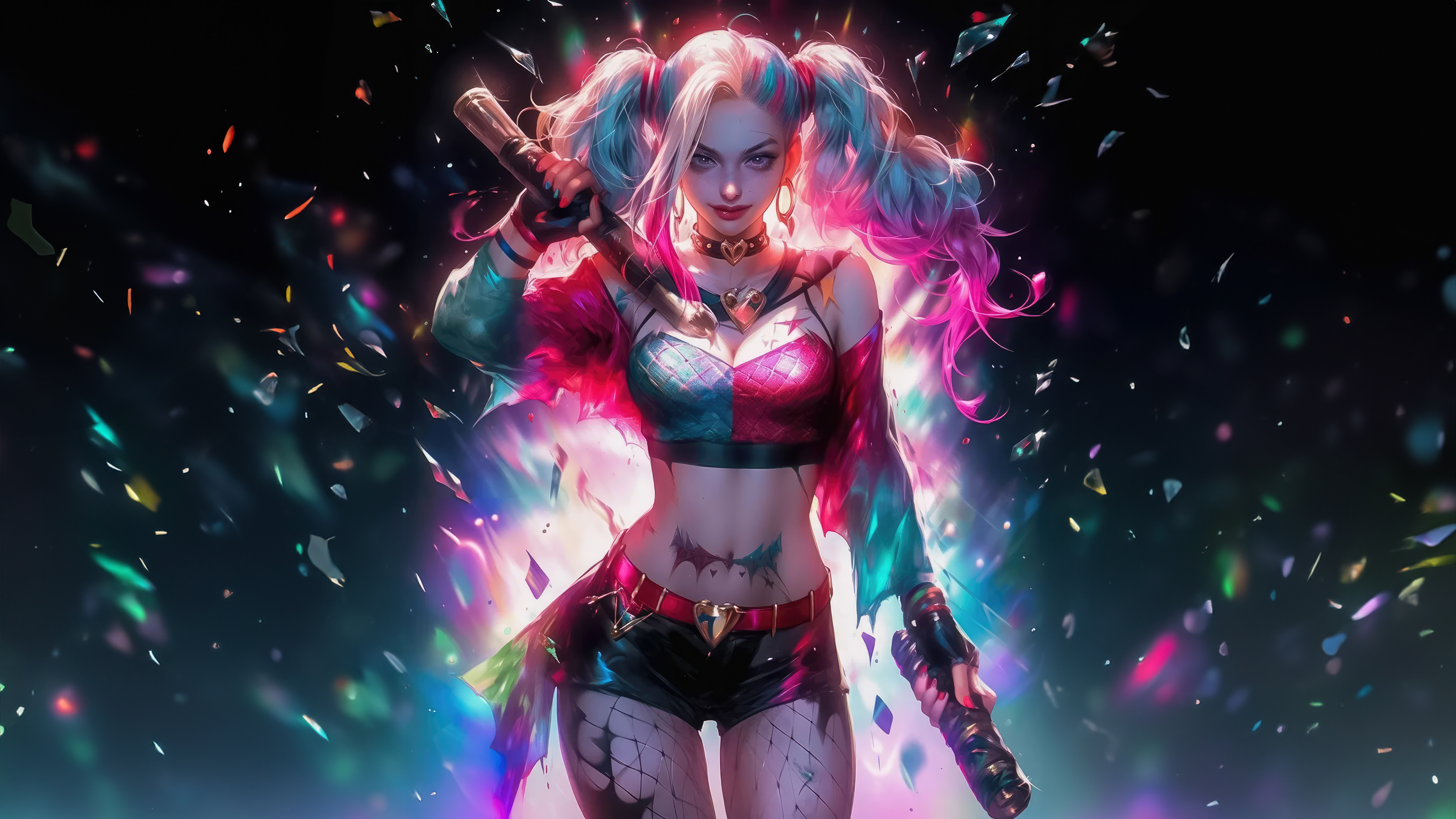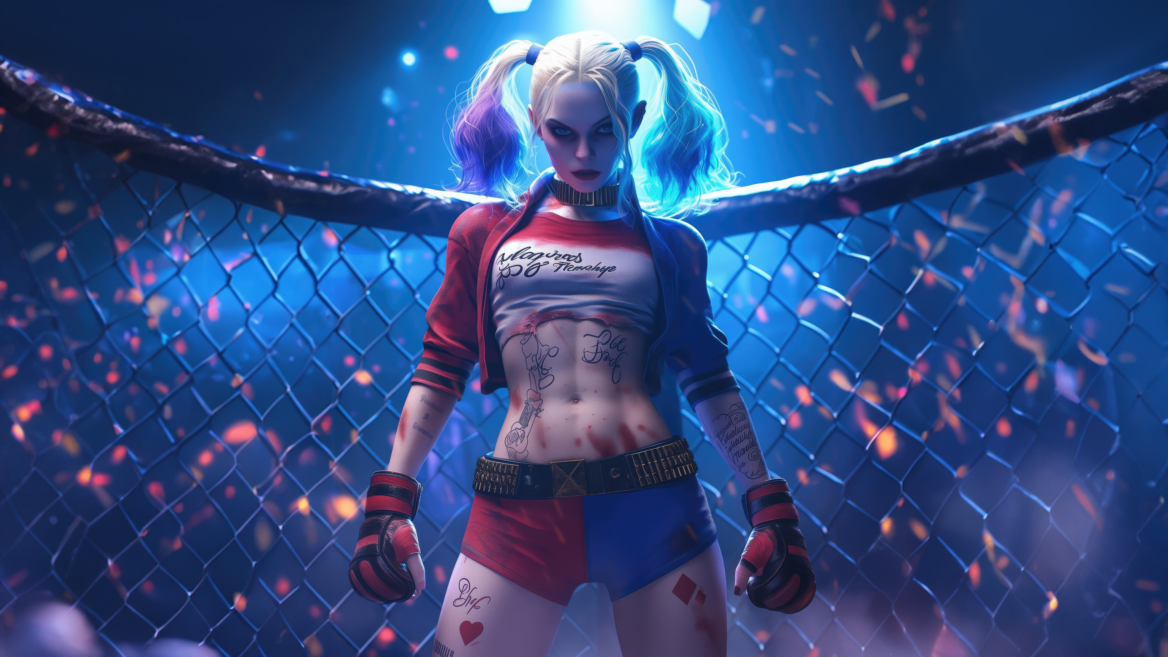 Harley Quinn's abilities include expert gymnastic skills, proficiency in weapons and hand-to-hand combat, complete unpredictability, immunity to toxins, and enhanced strength, agility, and durability. Quinn often wields clown-themed gag weapons, with an oversized mallet being her signature weapon. Additionally, she has a pair of pet hyenas, Bud and Lou, who sometimes serve as her attack dogs, and as a trained psychologist with a genius-level intellect, she is adept at deception and psychological manipulation.