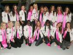 Group of professional cheerleaders posing in the studio. Isolated on white background