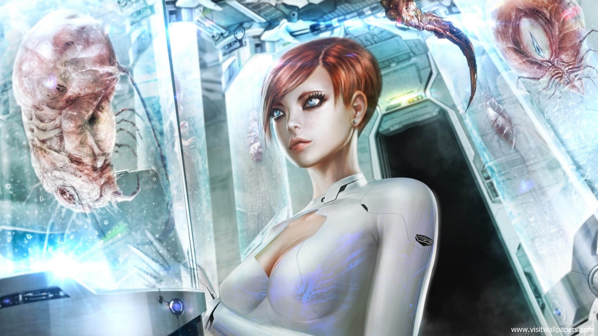 Fantasy_386Cyber cool girl with gun - hd Wallpaper