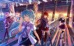 Fantasy_374A warrior girl in an epic pose was thrown against a glass building, she was injured, surrounded by thousands of glass fragments, against the backdrop of a crumbling city in the rays of sunset. 2d art