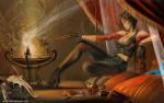 Fantasy_444Nova's gorgeous, hourglass figure and smooth, golden skin are on full display. Her deep blue hair cascades down her back, its vibrant hue beautifully contrasting with her bright blue eyes, which sparkle with a mischievous glint.
