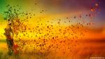 Fantasy_389the big eagle attack the warrior from above in a field, illustration painting