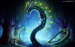 Fantasy_376The black silhouette of a young elf hunter in a green forest, she stands in a fighting position with a stretched magic arrow, ready to hit her target, on her side the spirit cat raring to fight. 2d