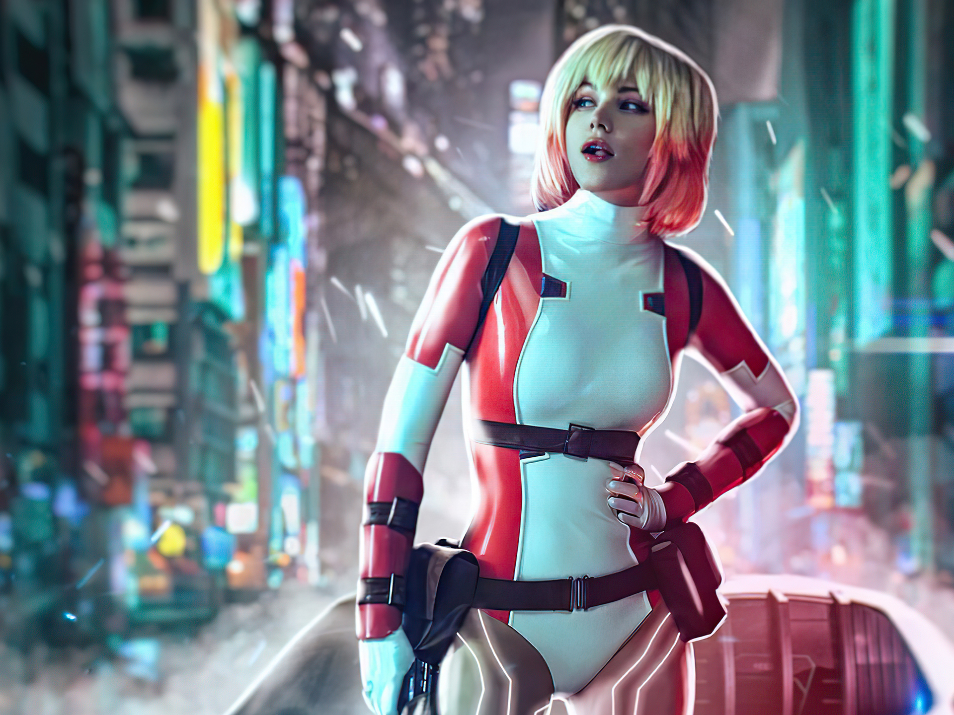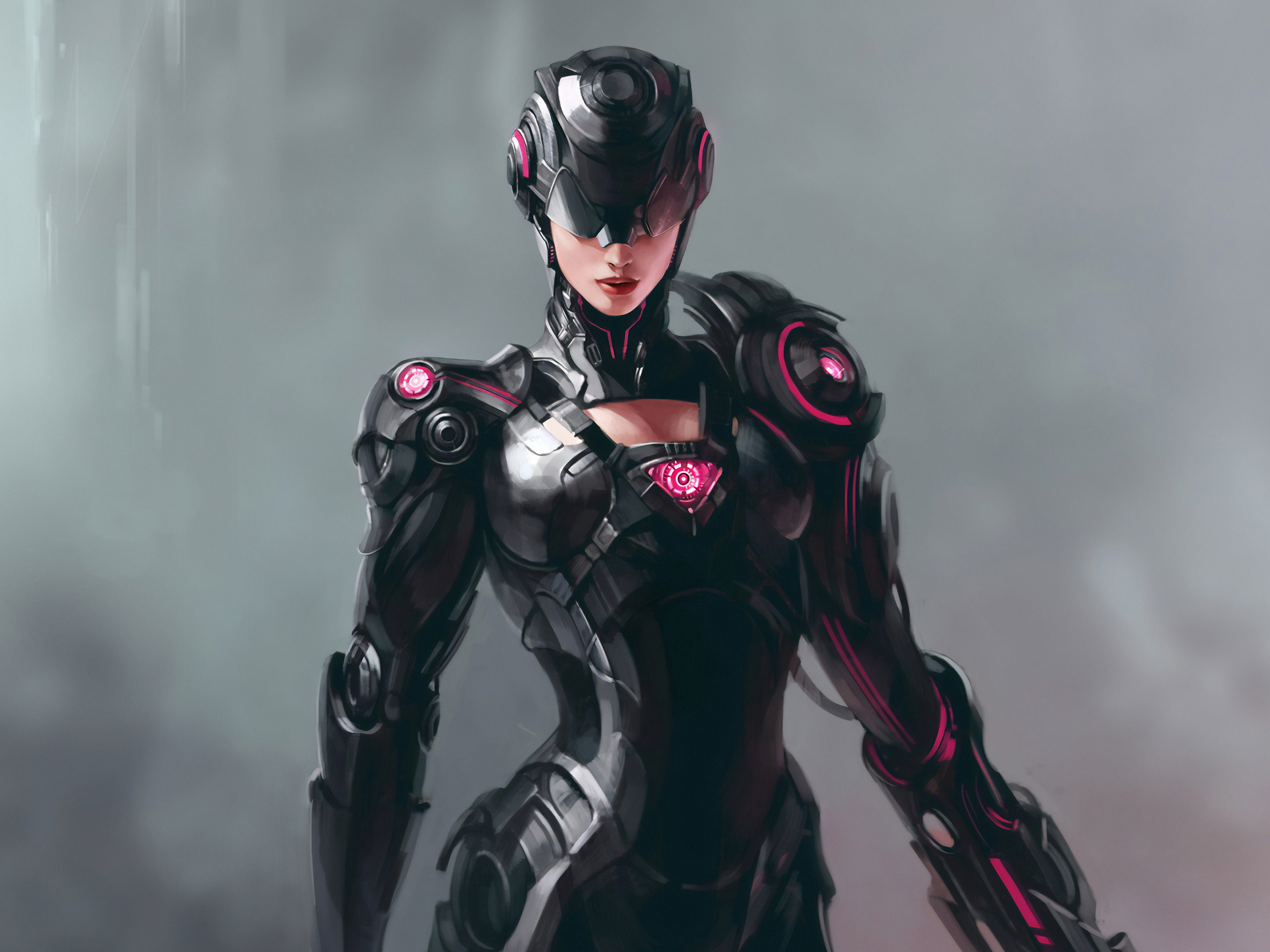 Fantasy_386Cyber cool girl with gun - hd Wallpaper