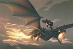 Fantasy_401Dark knight riding a dragon flying in the sunset sky, digital art style, illustration.