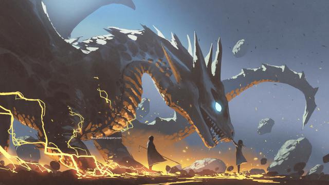 Fantasy_404Fantasy scene of a woman reaching for a dragon with a nearby lord, digital art style, illustration style.