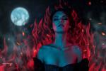 Fantasy_416Collage poster of charming elegant lady under magic devil spell hell fire night isolated on dark drawing image