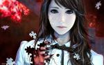 Fantasy_364Pretty brunette with a sword katana in a spring flower environment.