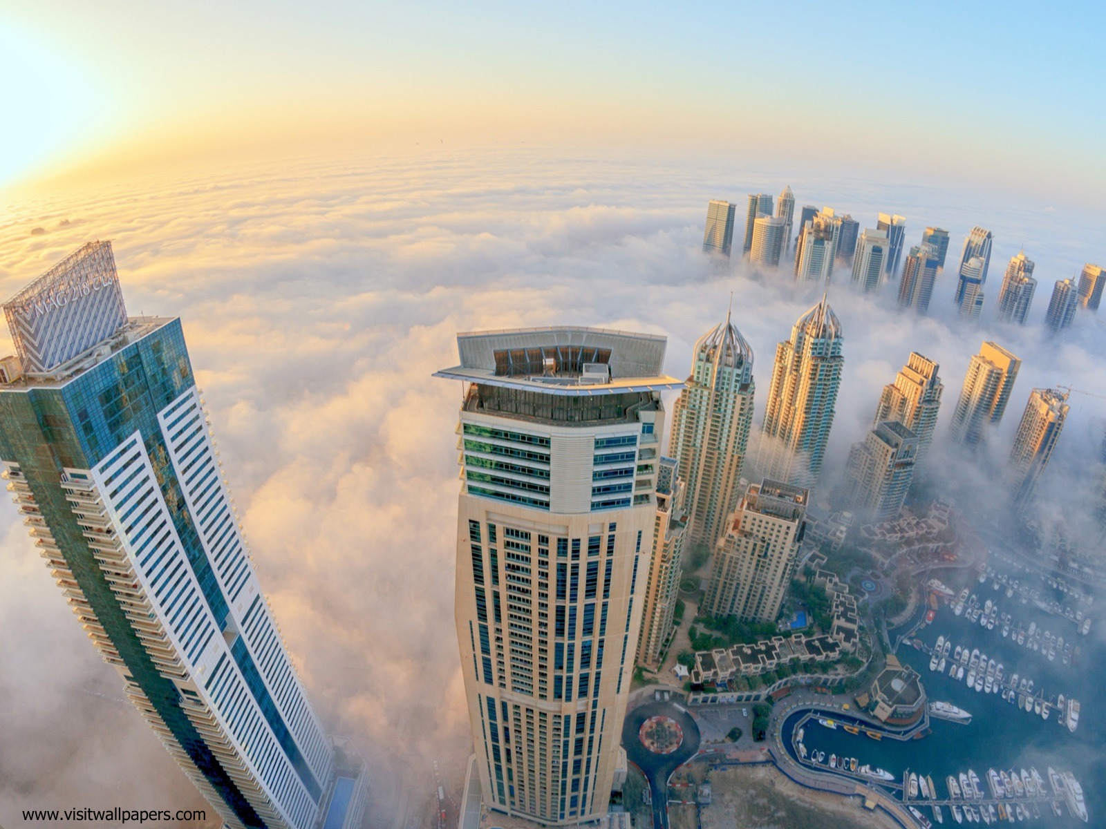 Dubai_109Marina 101. The art-deco topper of this Dubai skyscraper, completed in 2017, brings the Empire State Building to mind. Located in the yacht-filled Dubai Marina, this 1,394-foot, 101-floor residential building, which also contains the Middle East’s fir