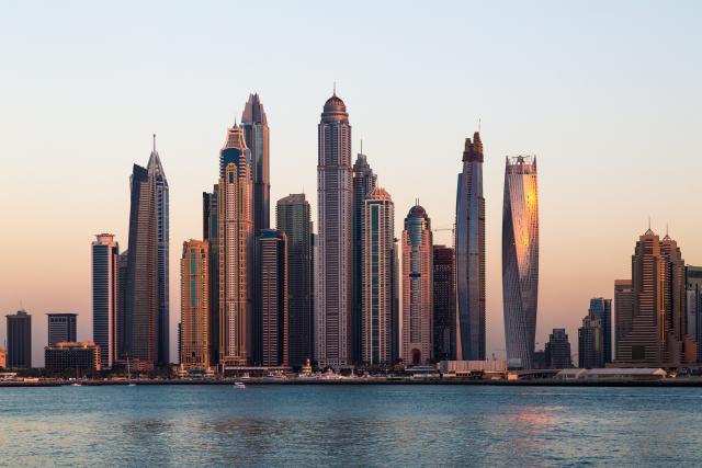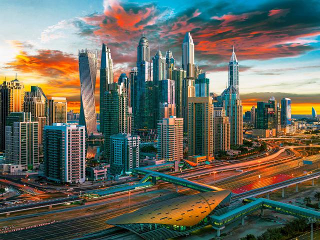 Dubai skyline at sunset