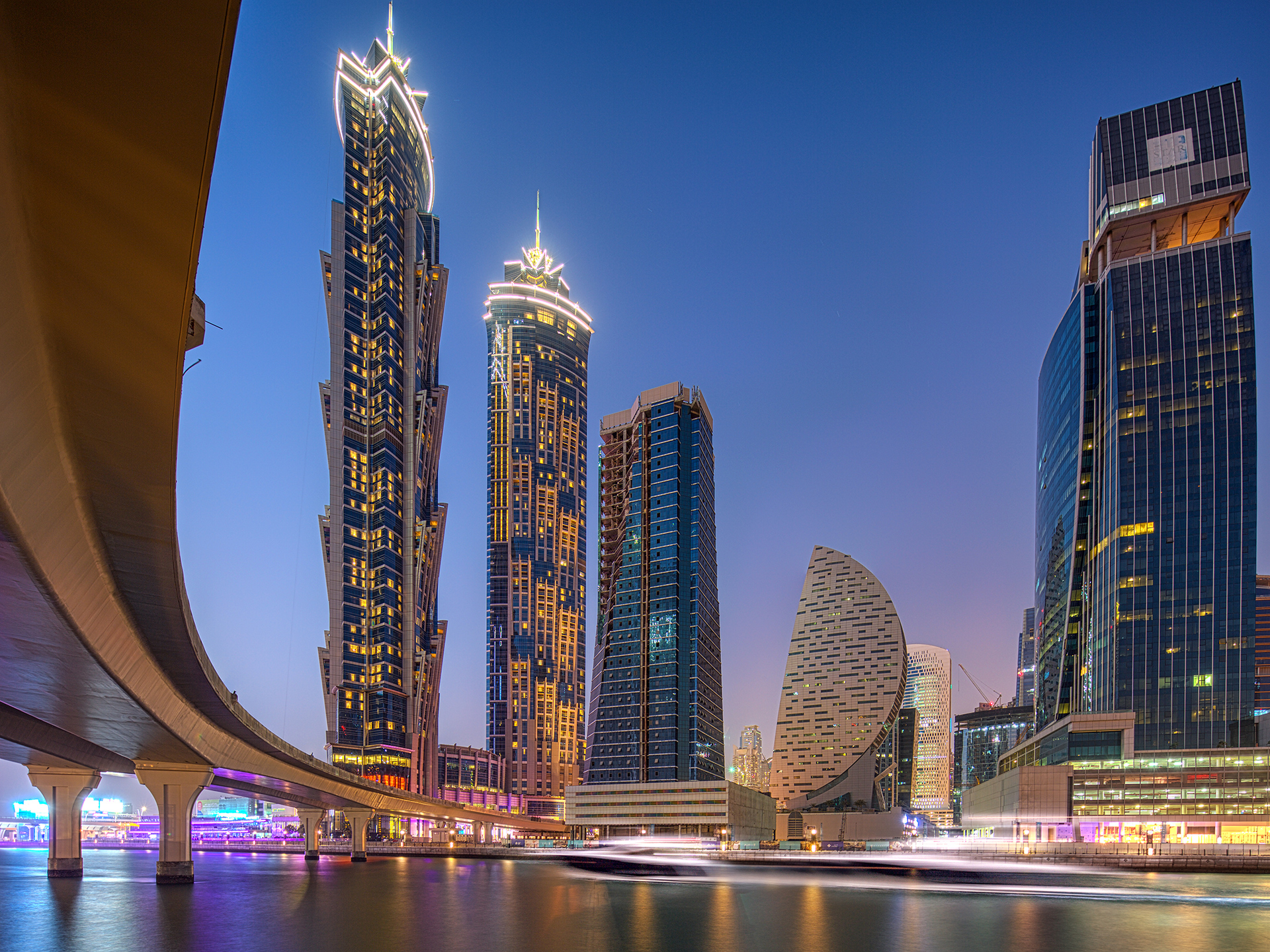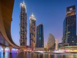 Dubai_112DUBAI, UAE, OCTOBER 28, 2017: Dubai Water Canal skylines, United Arab Emirates. The JW Marriott Marquis Dubai Hotel is another set of twins. As the world's second tallest hotel with 72 floors complying in a beautiful location by the Dubai Canal, it h