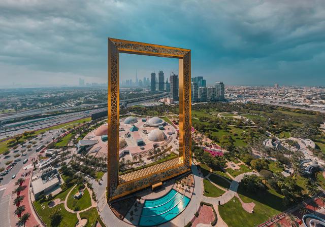 Dubai, United Arab Emirates, March 2019 - Aerial view of Dubai Frame