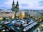 buildings_425Prague in Christmas time, classical view on snowy roofs in central part of city.
