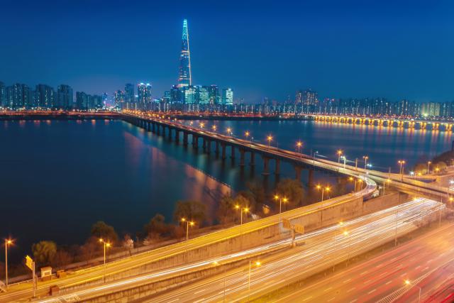 Aerial view of Seoul city with Lotte World Tower on the background, South Korea