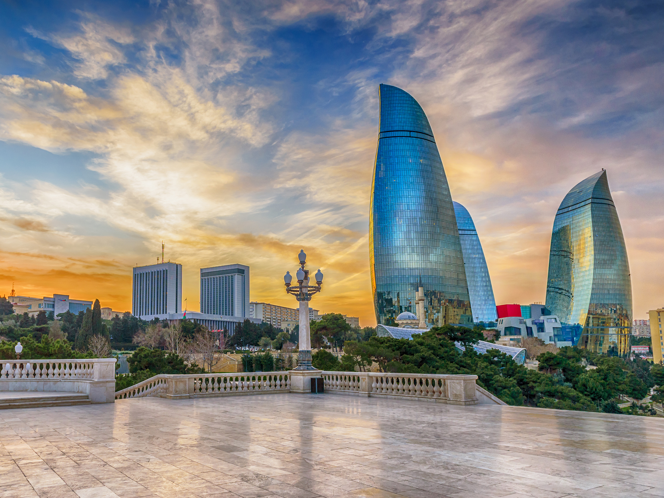 Panoramic cityscape view of Baku, capital city of Azerbaijan on a clean sunny day
