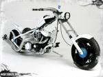 motorcycle_03Cyberpunk motorcycle in a seedy downtown street of a fantasy dystopian future city. Cinematic 3D illustration.