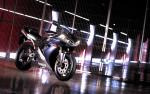 superbike34Sexy young female in modern attire posing with her custom science fiction light cycle motorcycle in a futuristic urban background setting. 3d rendering