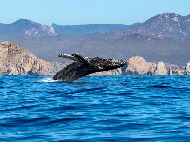 ocean-life-735Humpback Whale breaching in deep blue sea at Iceland in the morning