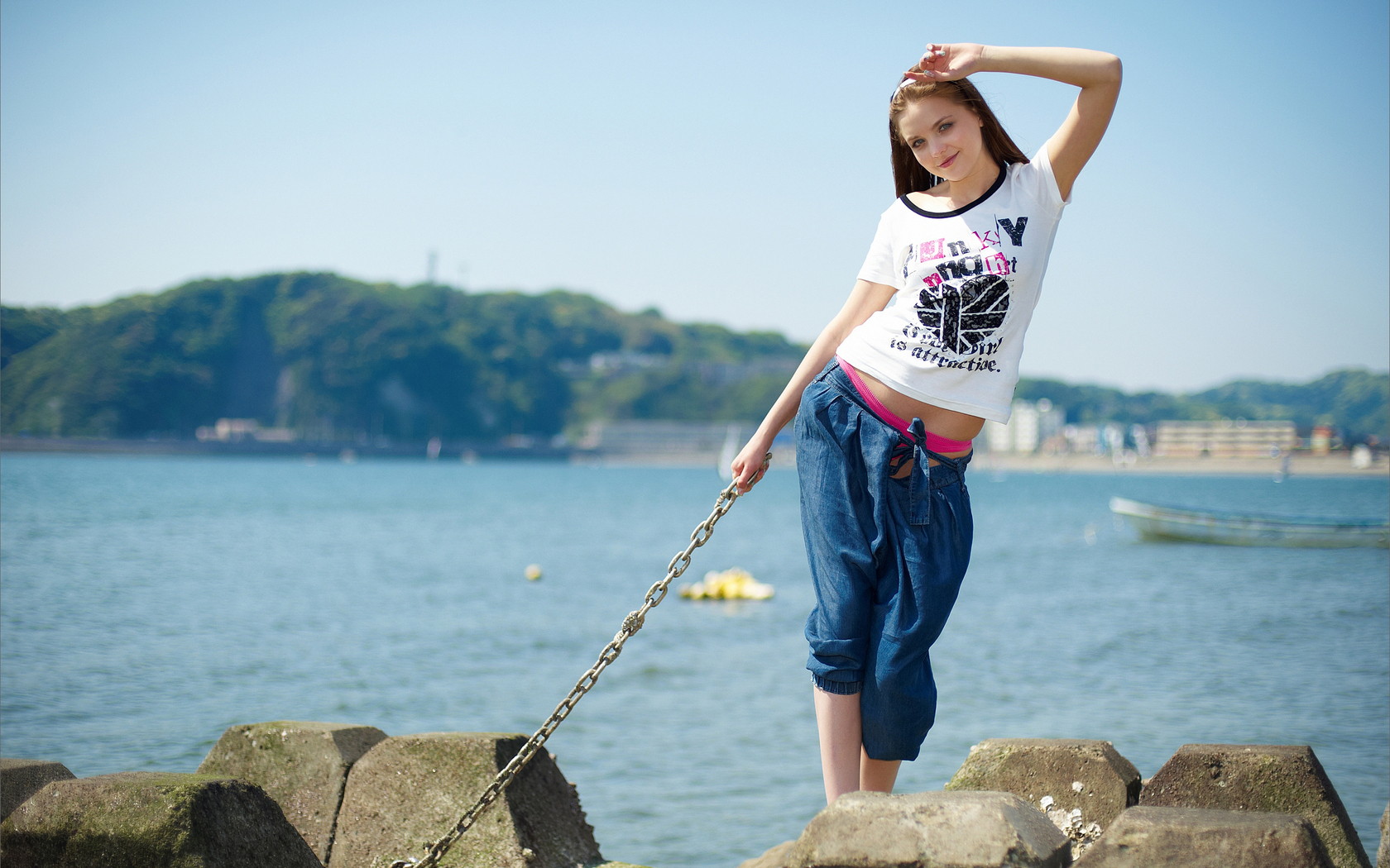 Beautiful_girls_741Sexy woman in white swimsuit is posing on the rock beside beautiful blue water
