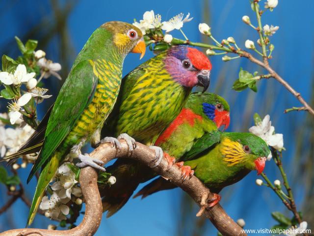 Birds_338Colorful Rainbow Lorikeet Parrot sitting in Branch, Australia
