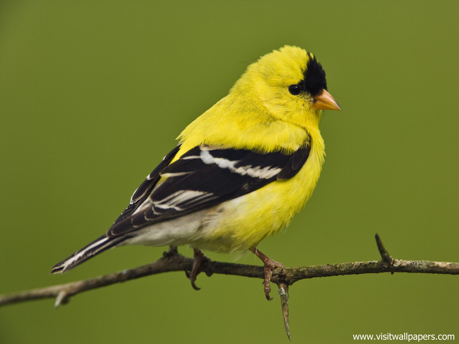 Birds_337American Goldfinch Perched on a Tree Branch